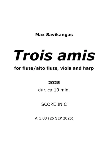 Trois amis for flute/alto flute, viola and harp