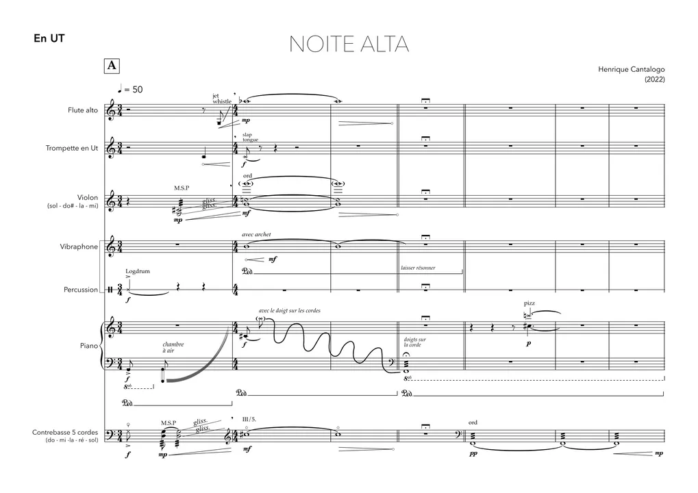 Noite Alta (2022) Composition : Henrique Cantalogo Ensemble Itineraire Alain Louvier, conductor Julie Brunet-Jailly, Alto Flute and piccolo Christophe Bredeloup, percussion Fuminori Tanada, piano Anne Mercier, violin Yann Dubost, doublebass Florent Cardon, trumpet