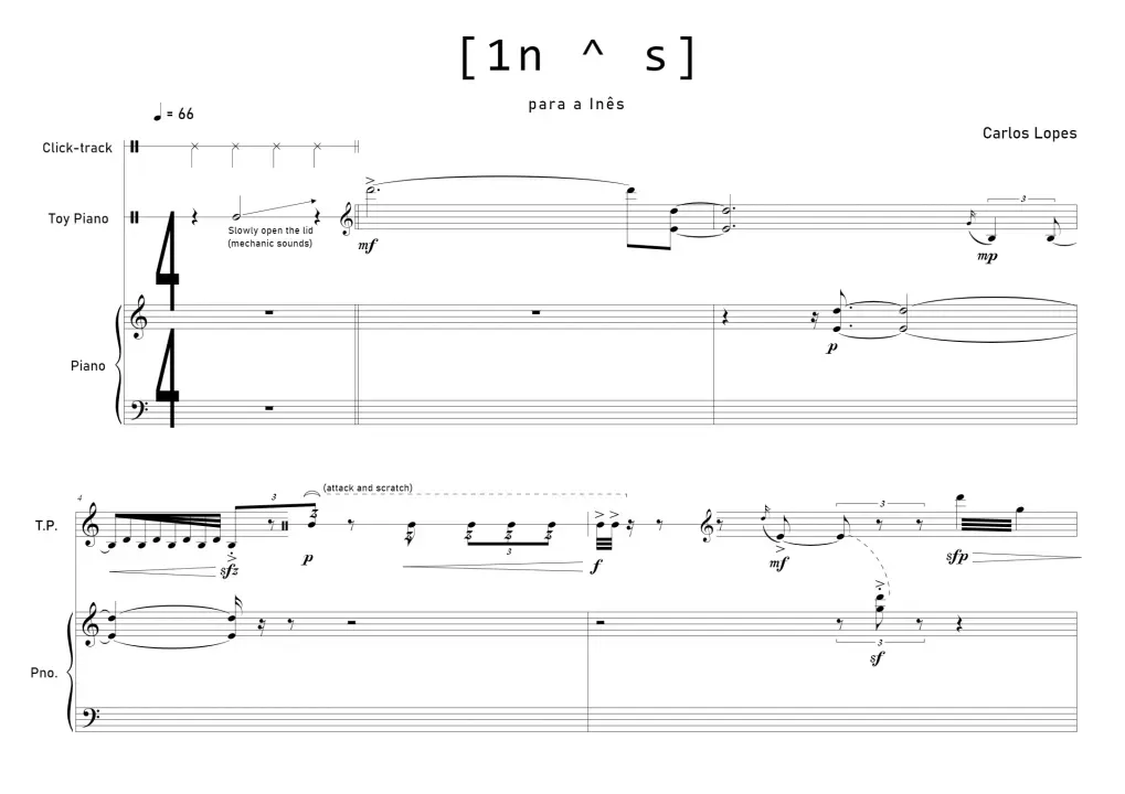 The main idea is the exponential destruction of the sound material during the work, destined to chaos from the moment it begins. A self-destructive moto perpetuo... dedicated to / written for my great (and slightly self-destructive) friend, Inês Lopes.