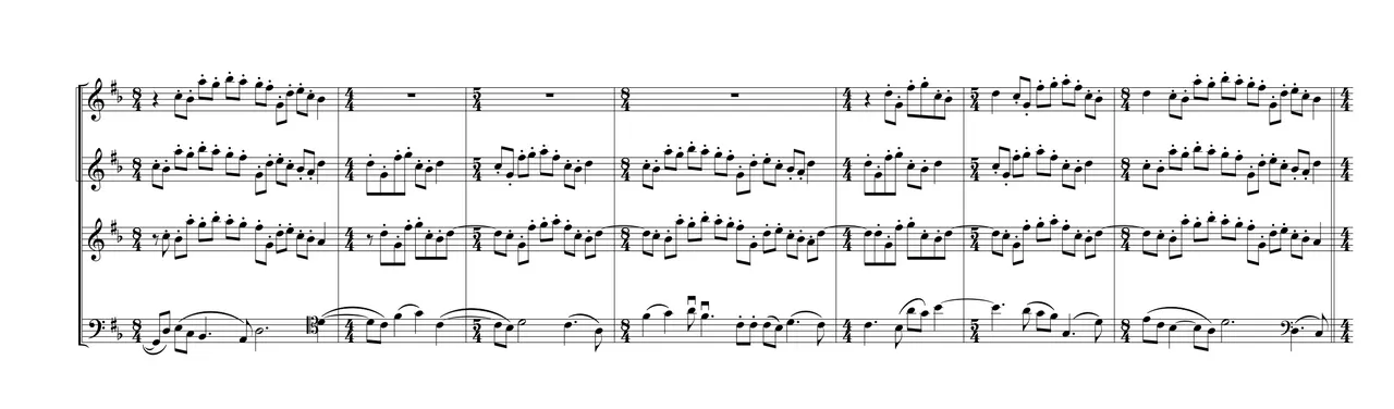 Ramas ("branches", in Spanish) describes the interpretation of the cello melody as a series of short notes, offset from the length of the cello melody by one-half-beat. From the trunk of the piece come the branches, then limbs, leaves, and so forth—the shifting and shrinking overlapping of the other voices' simultaneous realization of the process of the piece.