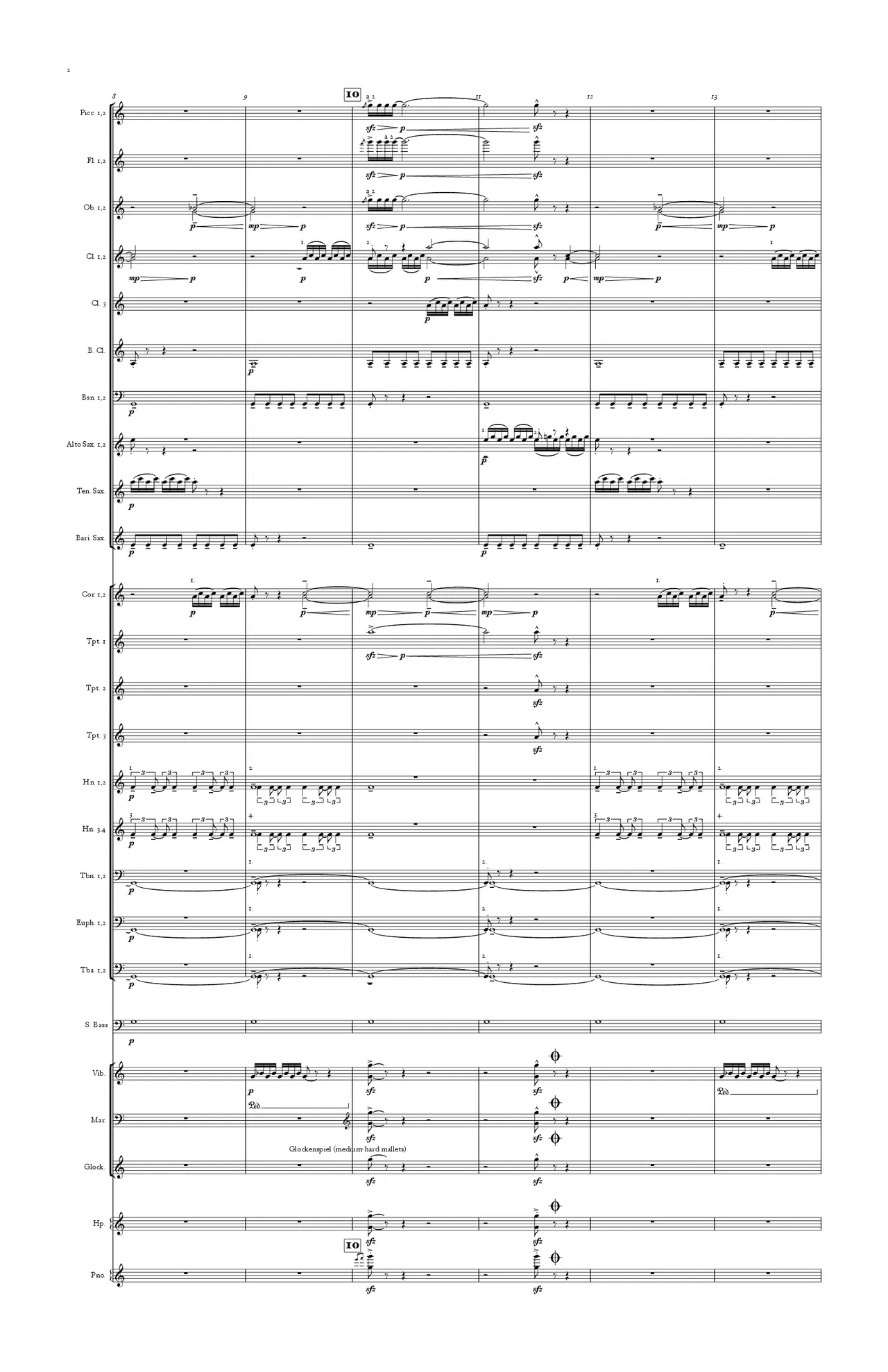 Motordom is my musical interpretation of artist Keith Sonnier’s light installation entitled “Motordom.” It is found in front of the District 7 Caltrans building in downtown Los Angeles. Shifting patterns of red and blue light, generated in neon and argon tubes, develop in horizontal bands all around the lobby of the Caltrans building. The tubes evoke taillights streaming down the freeway.