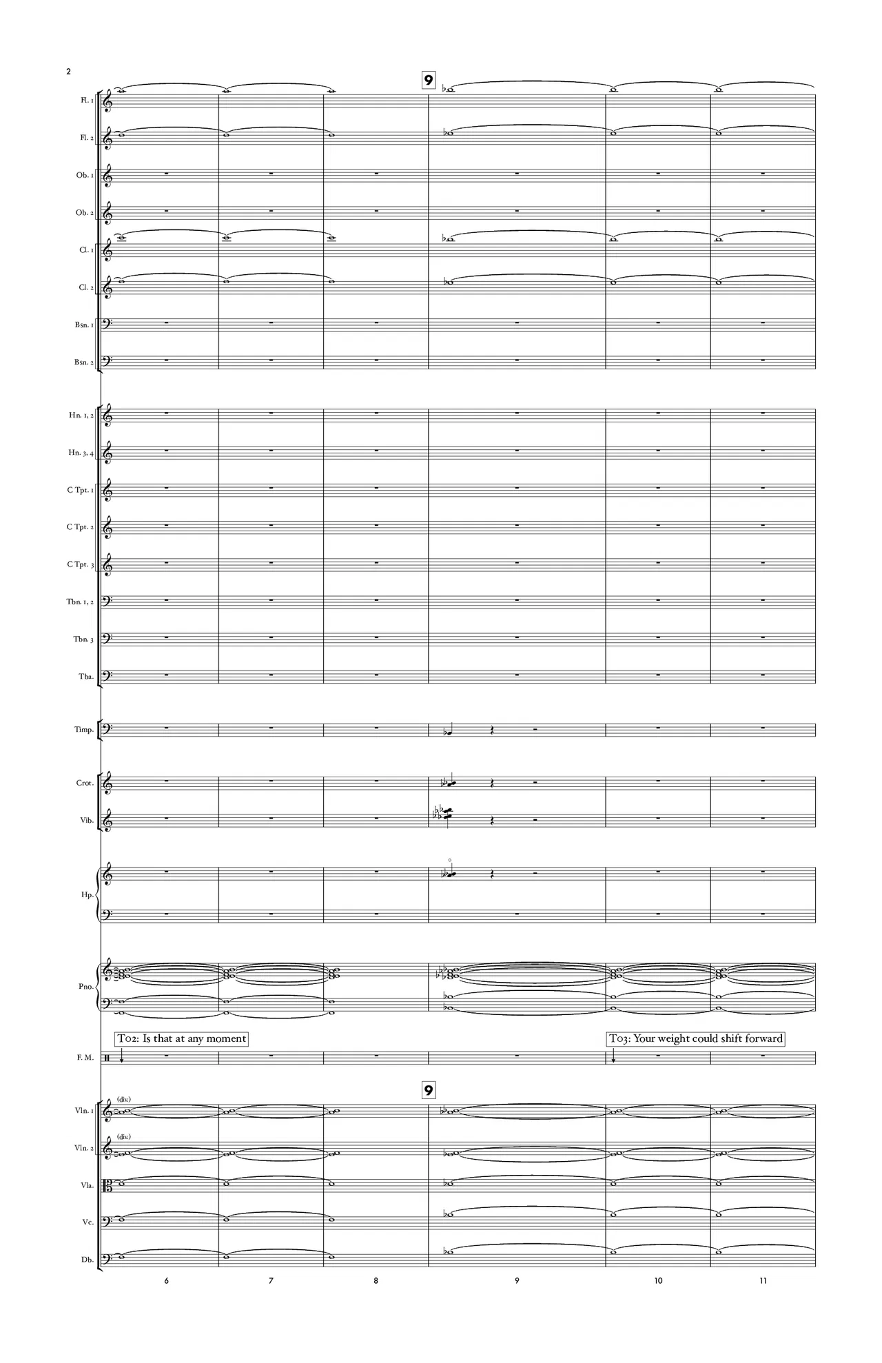 Full instrumentation: 2.2.2.2/4.3.2.1.1/timp.2 perc/hp.pno/str/electronics