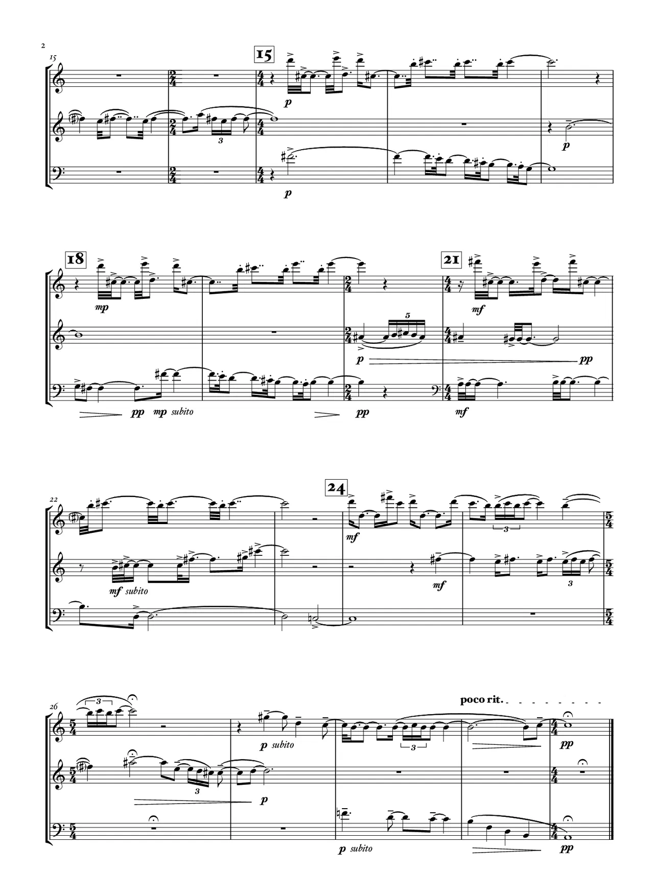 Or so it was, the composer thought, back when she started this piece. The trouble of course derives from the curse that experiemental warlock Guillaume de Machaut (c. 1300-1377) placed in his original work, as once the third pass through the refrain is taken in the three-voice rondeau, a small impish demon is summoned and quickly banished back to the darkness. Had the composer known this, she might not have endeavored to recreate the passage with flute, clarinet, and bassoon, which are well known to be the devil's favored instruments in the underworld. Of course, this being the case, the demon that did get summoned was not small or impish, and utterly refused to be banished to the darkness. Unfortunately, because of the resulting catastrophe in the composer's studio, and the squatting demon that now resides there, the piece may forever remain uncompleted. Let this stand as a warning to all audience and performers in advance, that your brave attemps to muddle through this will be met with disaster (compiled by Brandi Griffin).