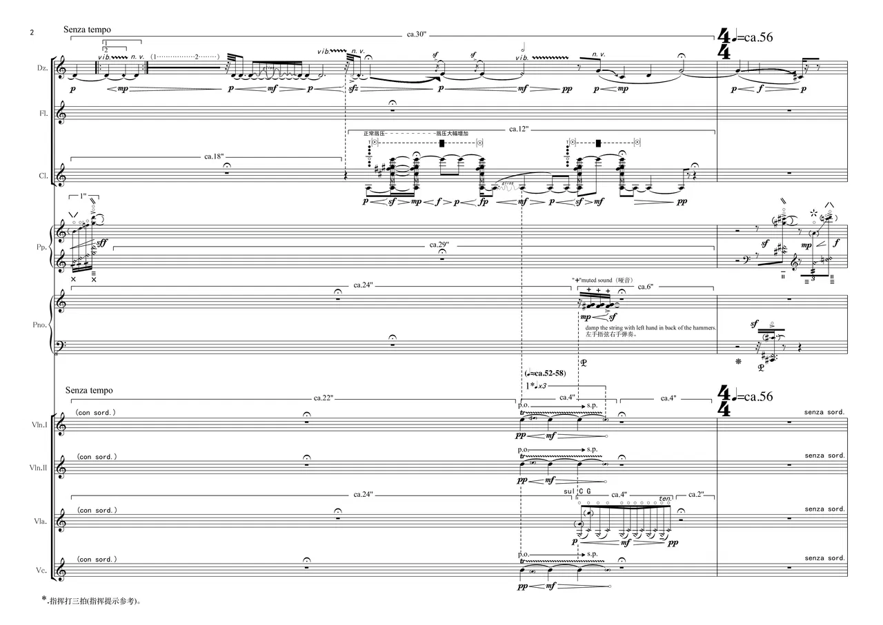 The Tyndall defines the shape of light. When the light source shines on the particles in the colloid, the particles vibrating at the same frequencies made by the light wave become new light sources. Countless small particles receive the light source and emit light waves with the same frequency as the light source, like the superposition effect of the beat frequency of two pitches of similar frequencies. This scientific and rational natural phenomenon is like a dream in the expression of light in ancient Chinese poetry, and it is endowed with many traditional cultural backgrounds. The tone construction of this work is simulated as a "light source", which is transmitted in the time dimension to the shape of the light constructed by the composer. The whole is like a beautiful scene formed by floating light shining in the sky. The pitches in the Chinese ancient music “The Fisherman's Questions and Answers” imply the synesthetic background color of this scene.