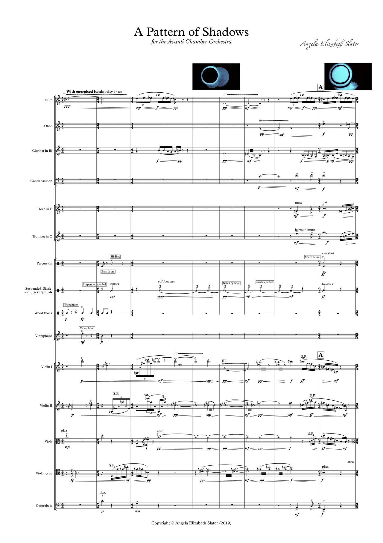 A Pattern of Shadows is based on abstract annimations of an old avant garde short film, which was labelled simply as 'Film 3' for this project.This film is full of different colours, shapes, movement, and textures. The music written alongside seeks to encapsulate these aspects through instrumental colour, timbre and harmony as well as capturing the movement through the dramatic gestures of the music.
