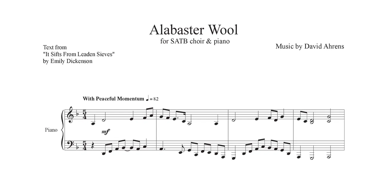 Emily Dickinson’s imagery-rich depiction of the snow is set for SATB choir and piano. Peaceful serenity with the motion and grandeur of winter. Program this gorgeous piece for your next concert or contest and transport your audience to a landscape layered with alabaster wool.