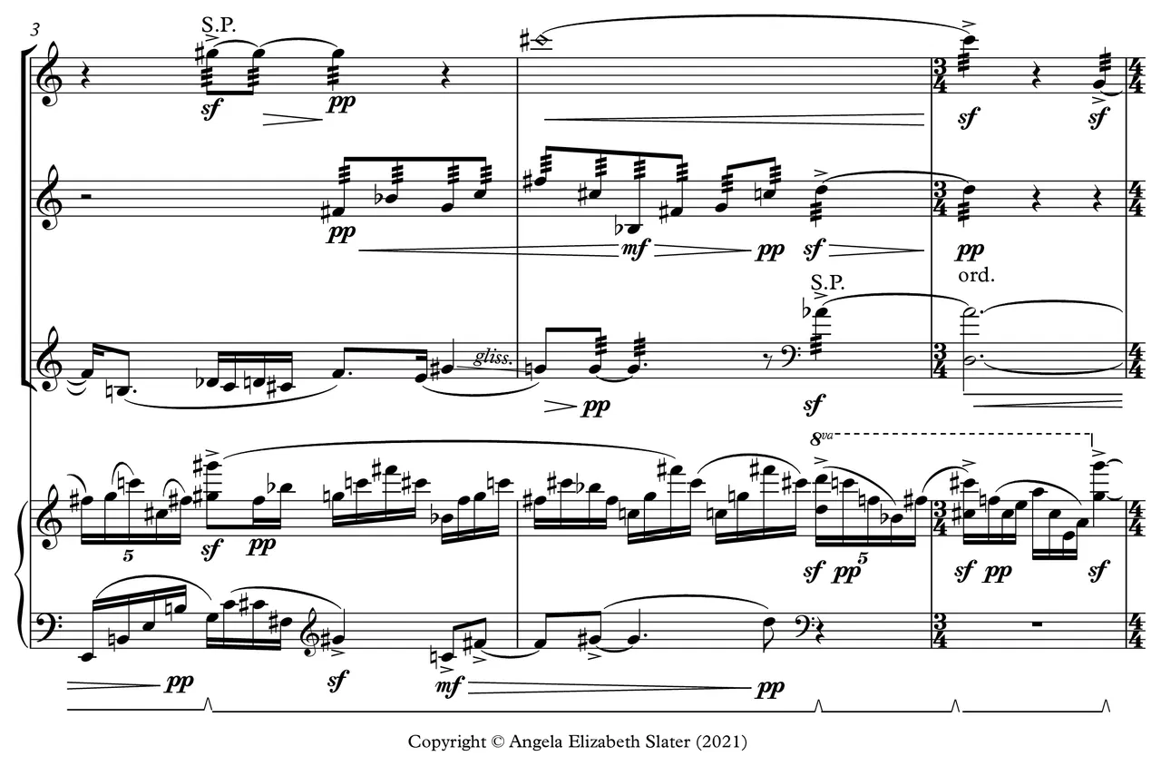 Spinning Colours | Faded Time was written for the Trio Northumbria for the 2021 RMA Conference held at Newcastle University. The piece explores the ways that musical expressions of colour interact with musical renderings of Laban's eight efforts. Each gesture and colour has an associated weight, energy, and speed, creating interesting relationships between the instruments and their respective sonorities. The first half of the piece explores the slow Laban efforts: float, glide, wring, and press. The second half engages with the gestural efforts: flick, slash, dab, and punch, before the material disintegrates in the pure harmonics, seemingly ever longer each time.