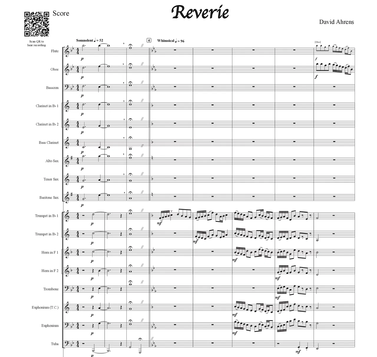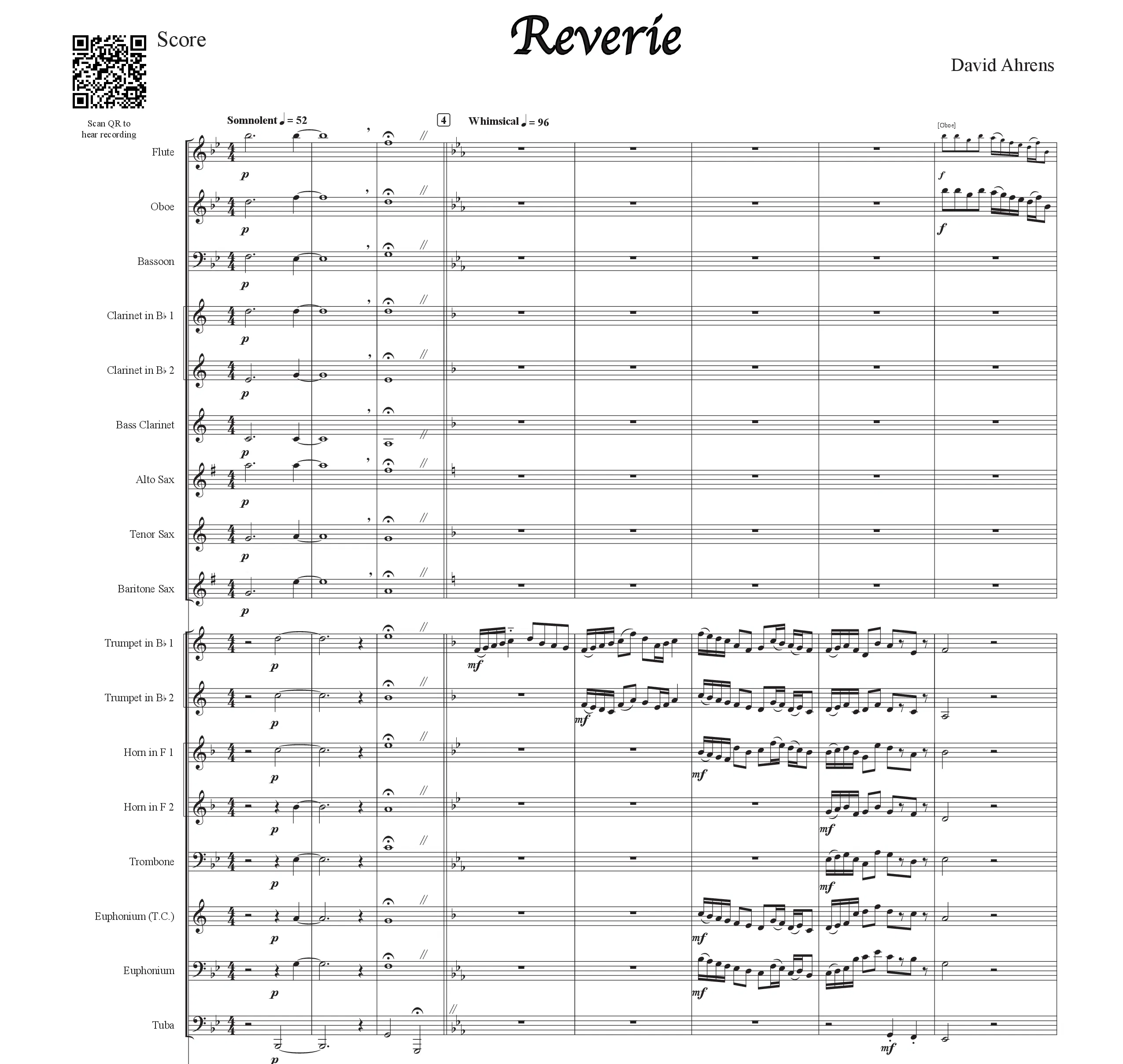 Fantasy | Daydream | Nightmare | Vision | Imagination | Muse - Reverie evokes imagery of daydreams, the drifting of thoughts, and the emotional range between whimsy, darkness, and comfort. It was composed during a cold Wyoming winter, which influenced its meditative and dreamy qualities. The composer aimed to allow listeners to escape into their own thoughts and imagination, experiencing the music as its own kind of daydream.