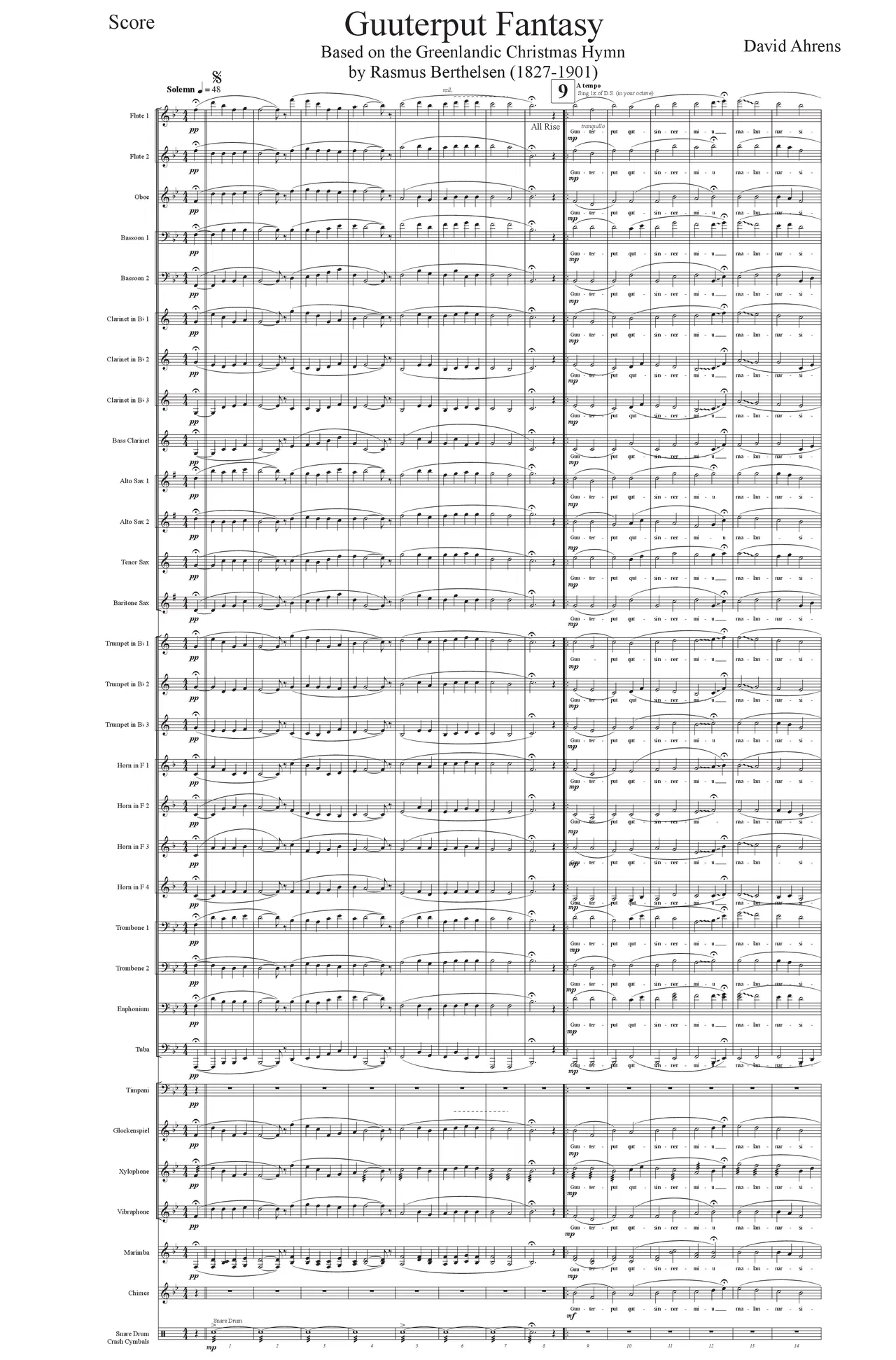 It is my hope that this composition for concert band will bring recognition and to this beautiful song and the inukkuut musical tradition, while honoring the people of Greenland and their rich culture.