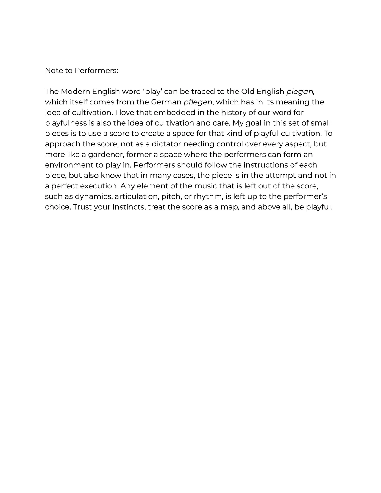 Cultivation - Construction is a work that sees the musical score as a playground for performers to work in rather than an unmovable guide. Each section gives detailed instructions that still leave much up to the decisions and whims of the individual players and creates a sense of playfulness within the ensemble. This piece could be played a million different ways, and it is a joy to watch the score and see how the players interpreted it in this particular instance.