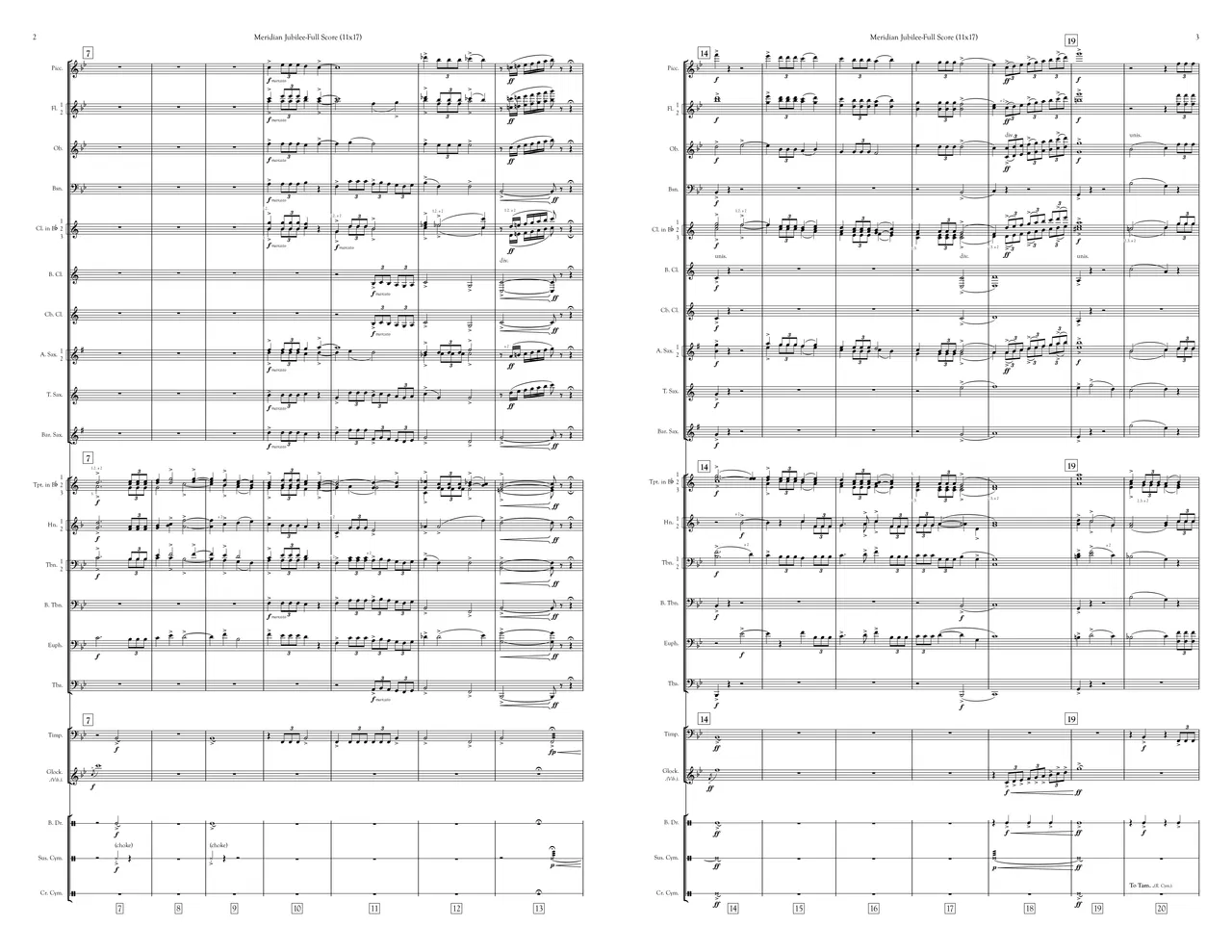 Commissioned by the Meridian Community Band for the occasion of their 50th Anniversary, Meridian Jubilee is about the roots of the group's name- a little place named Meridian Township. Located in Okemos, Michigan, this township has a historical museum with buildings such as a barn and town hall that can be toured. Additionally, there's a public park with nature all over so people can enjoy the small lake and the woods nearby. This piece starts with a fanfare, as is customary for a celebratory work but transitions into calmer and lyrical music representing the beauty this little slice of nature and history has to offer a rather large suburban region. A playful transition then ushers into the closing fanfare, based on the music that has already been heard.