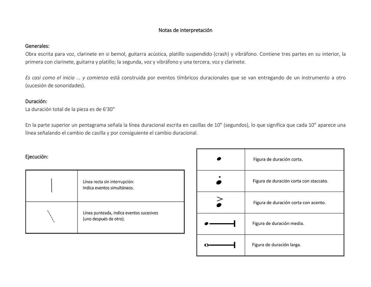 Melissa Vargas’ Es casi como el inicio... y comienza is written in non-metrical notation, instead orienting the pace of material around a clock timer. Deliberately drawn out instrumental gestures lay a foundation for wild, melismatic syllabic passages in the voice.