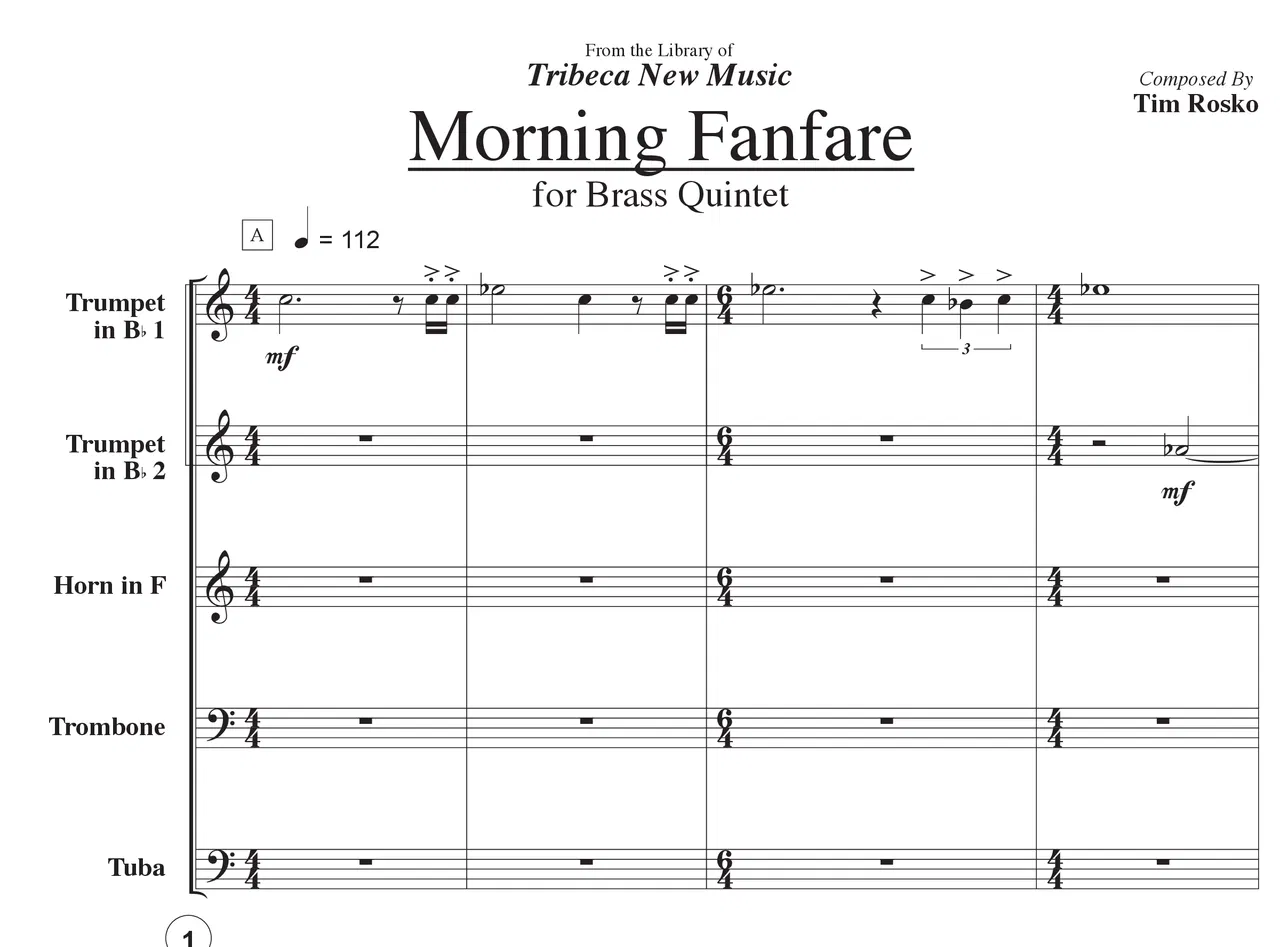 “Morning Fanfare” for Brass Quintet was composed in 2010 while I was a student at Belmont University. It was my first time writing anything for Brass Quintet and I wanted to explore the quintessential sounds and tonal possibilities of the ensemble through this piece. Naturally, I landed on a fanfare and delved into the pageantry and regal quality of the instruments and form. The name “Morning Fanfare” was given after I revisited and revised the piece in 2023.