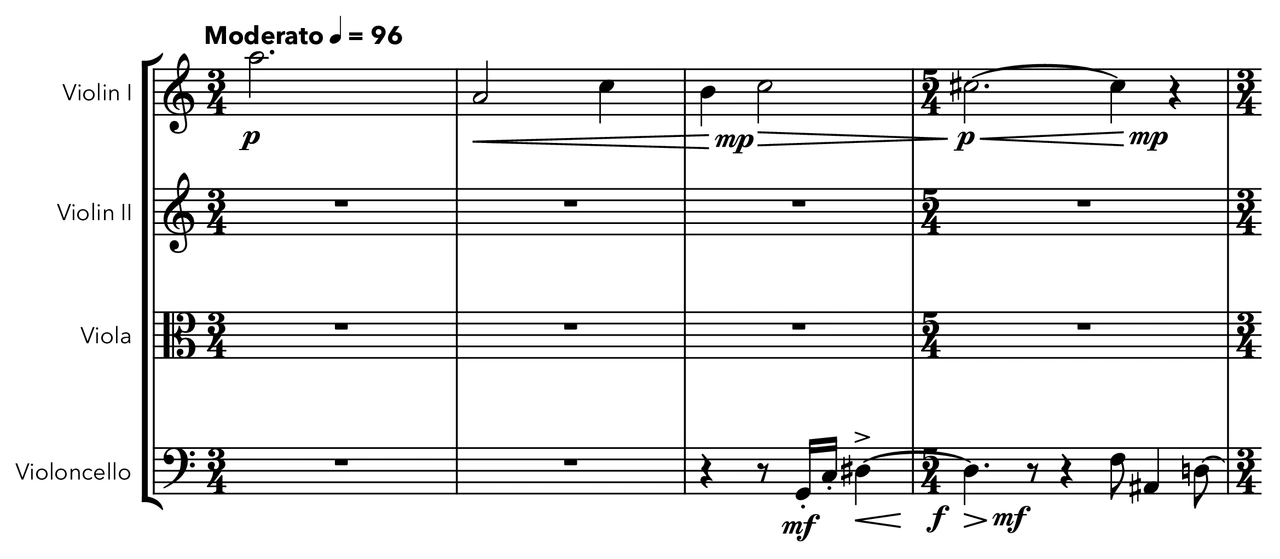 The brief mid-point tranquillo, with quiet tremolo microtones in the violins, simulates the distorted sounds a swimmer experiences underwater. After a further period of activity and instability, the music slows and takes a detour into chorale-style tonal counterpoint, suggesting a cognitive decision-making process as the music decides where to go next. In the final section, characterised by harmonic stability and a regular rhythmic pulses, a decision has been made and the music purposefully returns toward the shore.