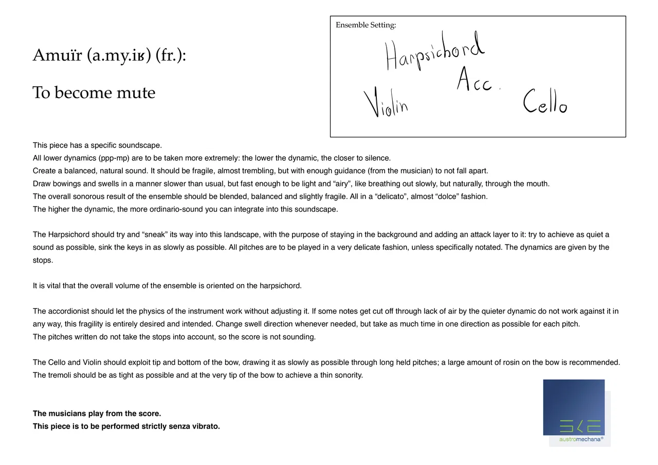 2026 Score Follower Call for Works, $1,000 Honorarium.