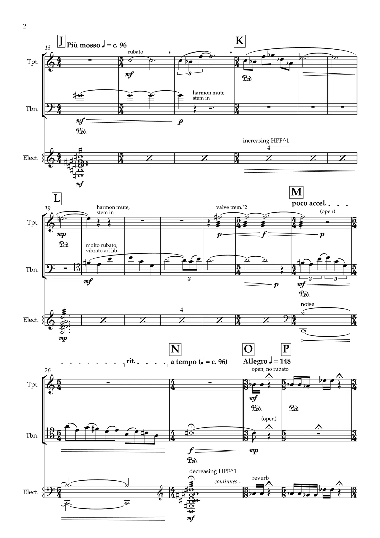 The intention behind composing this piece was to facilitate a more natural relationship between the performers and the electronic accompaniment by allowing them to trigger pre-recorded sounds in their own time, as opposed to following the rigid timing of a click-track. Ultimately this gives the performers more freedom to perform expressively and impromptu alongside the electronics, as if the electronics were a third member of the ensemble.