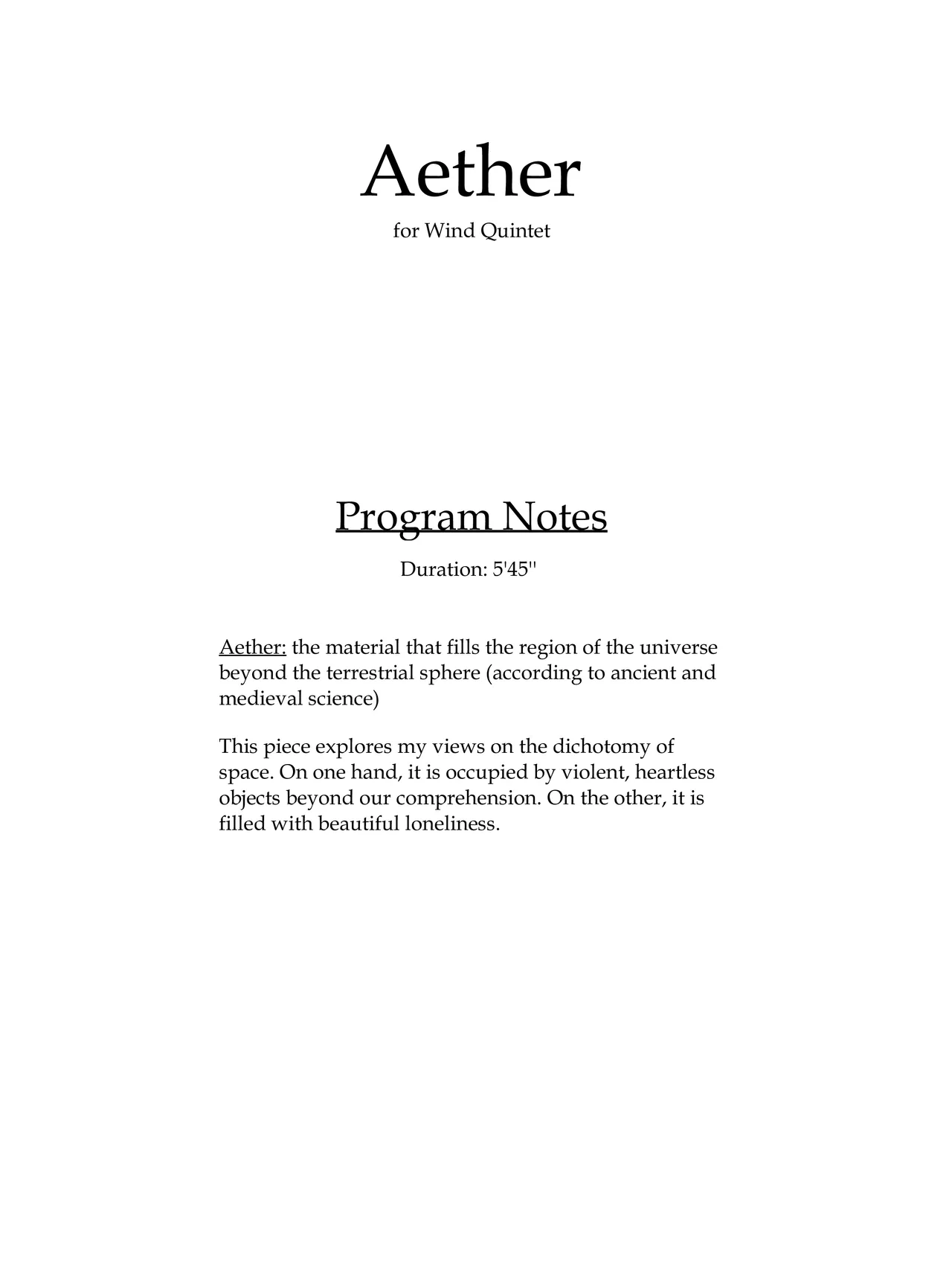This piece explores my views on the dichotomy of space. On one hand, it is occupied by violent, heartless objects beyond our comprehension. On the other, it is filled with beautiful loneliness.