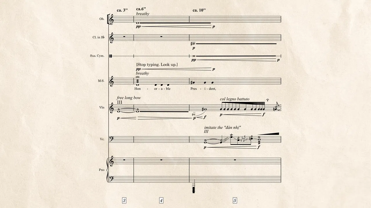 Not long after his death, his mother, Lê Thị Anh, wrote a letter to President Nixon to plea for further investigation of her son’s death.* Regrettably, her letter remained unanswered. However, the power of a mother’s heart and the deafening silence resonated far beyond the confines of history, and now they have found a new voice within my musical composition, A Vietnamese Mother’s Letter to Nixon. The texts in this work are the entirety of Lê Thị Anh’s letter, and I have woven various sounds to capture the raw pain of a mother’s loss and her unwavering pursuit of truth and justice.