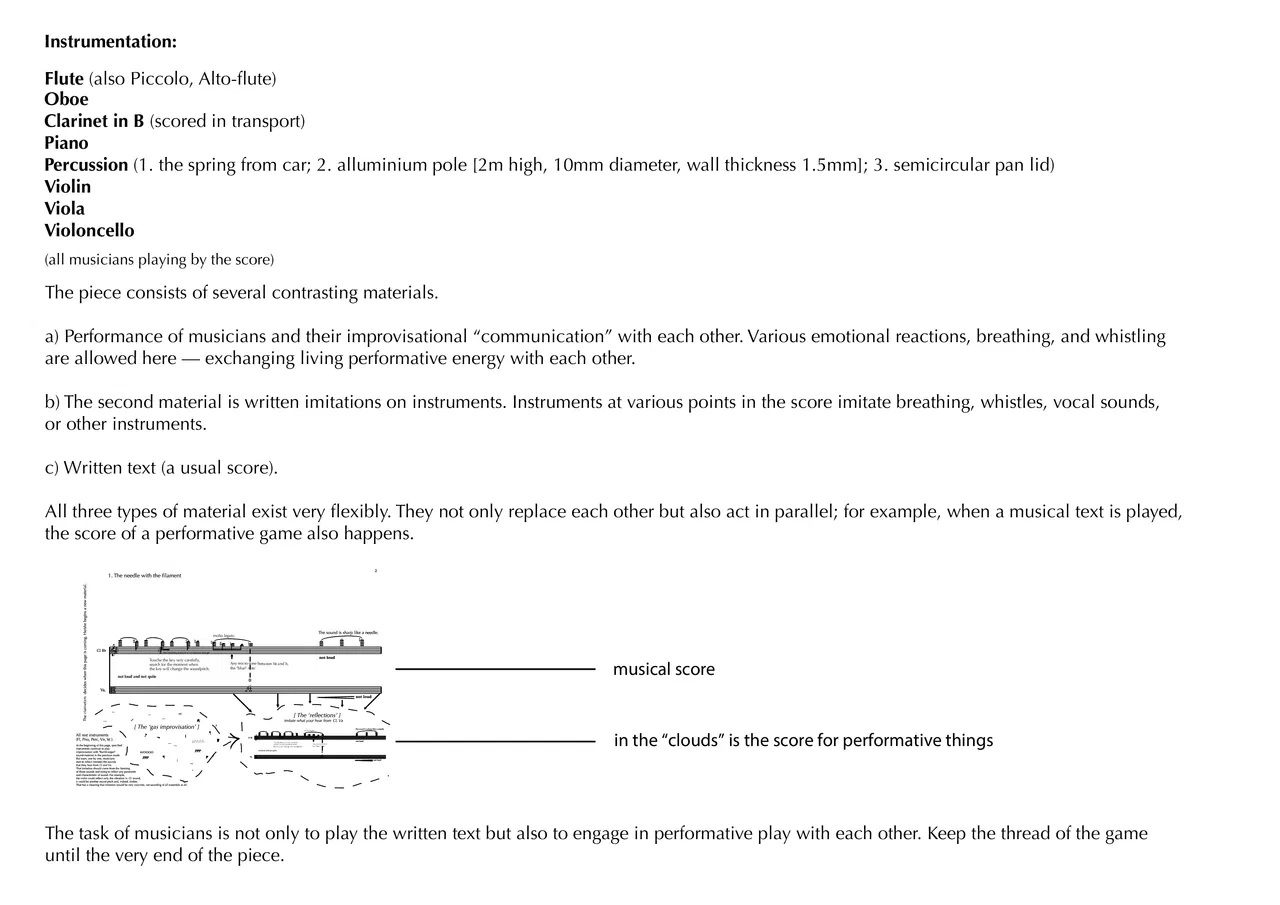 "When I started writing the piece, I had a terrible dream about a glowing gas that put everyone in an agitated state. People felt happy and light. In the dream, I experienced this intoxicating state, was fooled around, and was in good spirits. Gradually, a feeling of a secret known only to me arose: the gas was a means of enslaving people's consciousness, driving them crazy. In the next part of the dream, I tried to tell the secret to my friends, to no avail; everyone was under the influence of the gas. The dream's ending was dramatic: people began to attack each other.