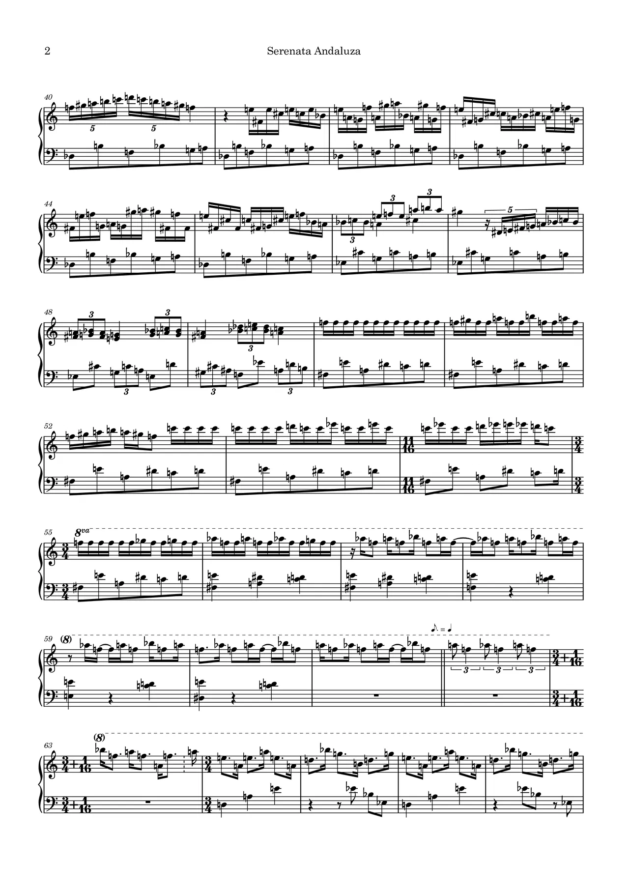 These sounds were reproduced by preparing the piano with neodymium magnets in various places, rubber strips and adhesive paste. Throughout the piece, the harsh world of jondo is explored. The first section evokes Manuel de Falla's Serenata Andaluza, initially in the form of a cante patrás (song for the bailaora), which transforms into an escobilla (rhythmic episode). A second section refers to Joaquín Nin's Danza Ibérica, incorporating a querío (lament) between another escobilla and a kind of toccata. After the tolling of a knell, the piece closes with an allusion to La Farruca, a traditional song, and trails off like a tablao that had to be interrupted.