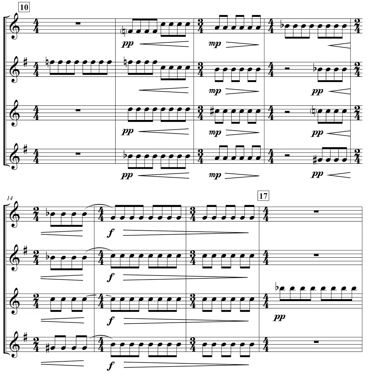 Inspired by electronic music and minimalism, threads of execution draws its name from computer science, in which a thread of execution is a sequence of programmed instructions that can be managed independently by an operating system. In this composition, the multiple voices trailing in and out of the constantly moving melody are meant to represent multiple threads can exist at the same time within the same process. These threads are weaved throughout the work, passing between voices and being altered with each restatement. This work begins with a single process, accompanied by three other processes, eventually reaching a climax leading towards a calmer middle section. However, this interlude is proven brief as an altered version of the first melody returns leading toward a bombastic climax, or server error, followed by the eventual fading out of the threads as their strings of code are deleted.