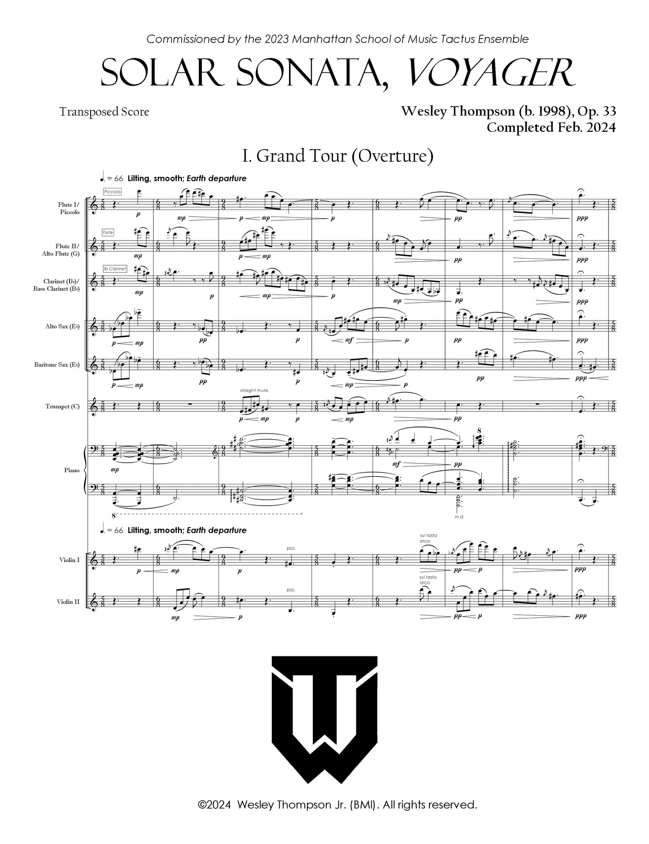 - Voyager was commissioned and premiered by the 2023-24 MSM Tactus chamber ensemble at their yearly concert on April 12th, 2024, in Neidorff-Karpati Hall, Manhattan School of Music.