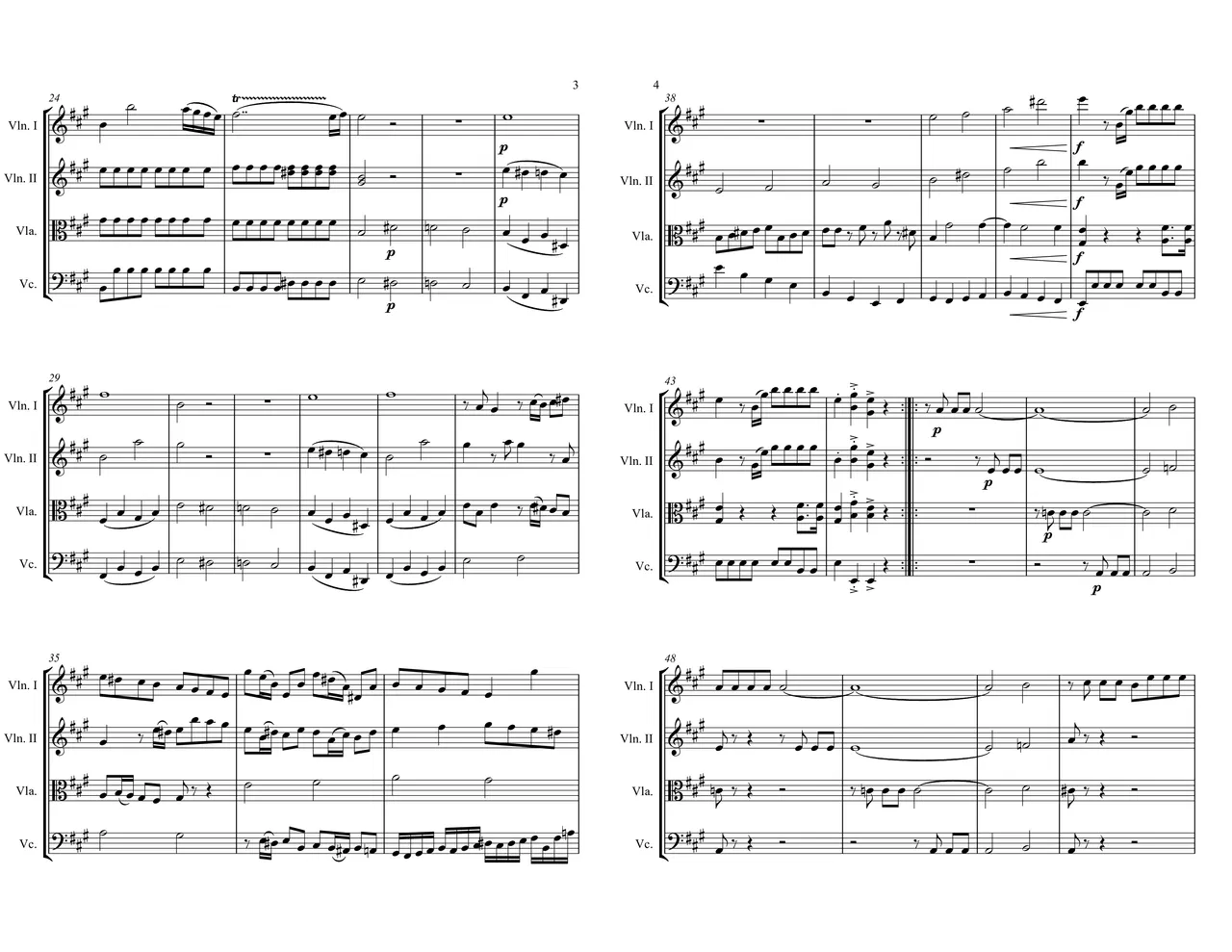 The Development (Measures 45-69): The Development Section takes a chunk or chunks from the exposition and messes around with them, usually by moving it to different keys or taking them apart and putting them back together again. This movement takes the transition theme and moves it into different keys. The Development section should end on a strong Dominant chord to help lead back into The Recapitulation.