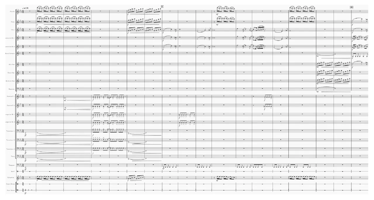 Original work resembling a film score from a chase scene in an action movie. First section is fast and we are being chased by something evil. The second section is slow and we are hiding. While there is temporary relief, there is plenty of tension as we are only putting off the inevitable. The last section is very fast as we are being chased with no escape.
