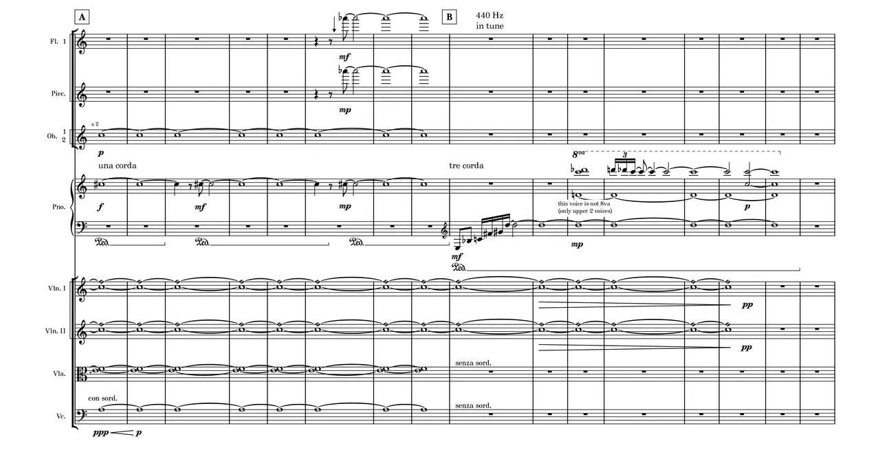 This composition is a perpetuum mobile. The end is simultaneously the beginning again – just like life. One could repeat the piece infinitely. ------- "From birth, humans are immersed in a tunnel of one dimension and one direction. It guides them, contains them and takes them through spaces that have been made inaccessible: spaces that are out of the ordinary, multidimensional… free !"