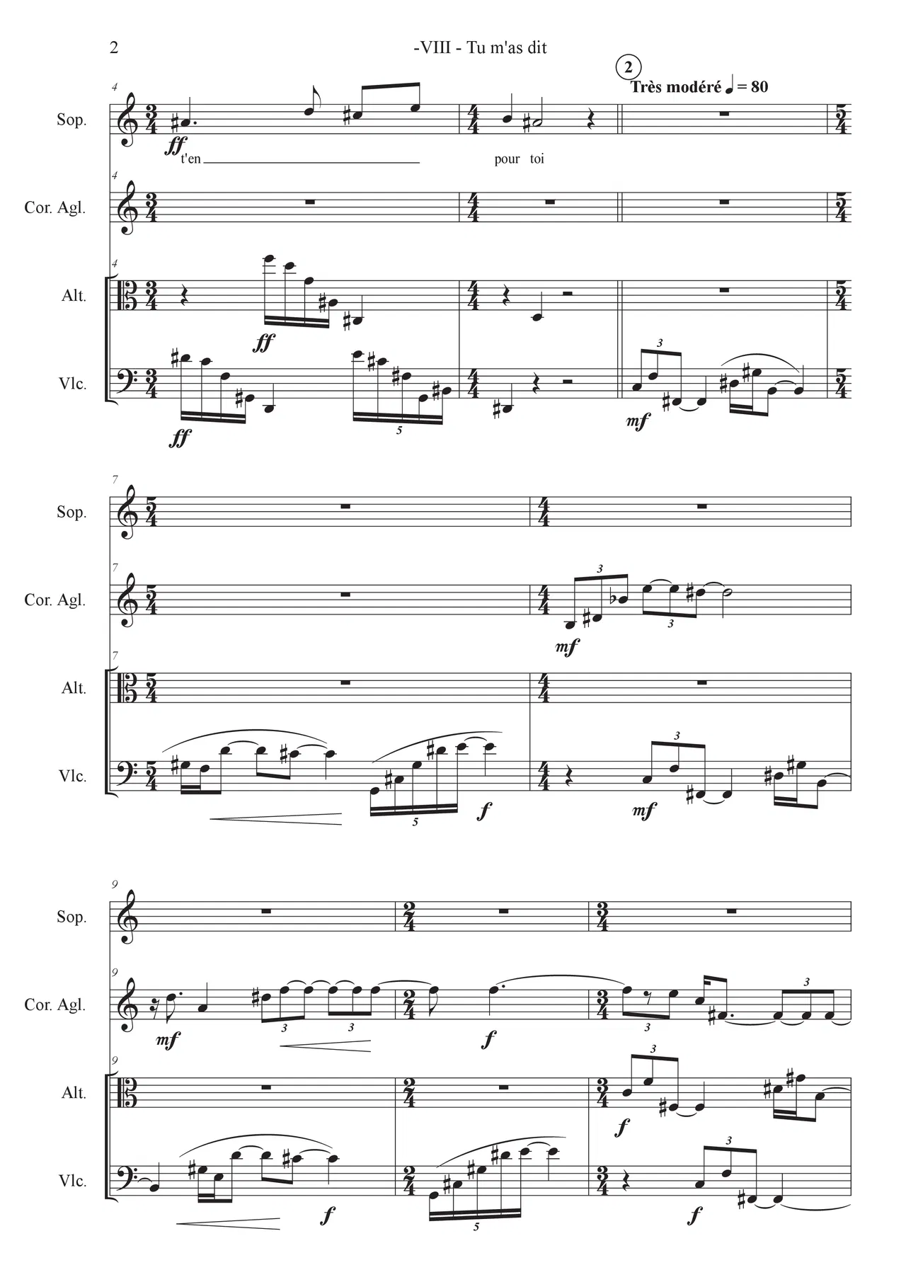 Part of a cycle of twelve pieces for soprano and three instruments (English horn, viola and cello): "Psaumes de l'absence" (Psalms of absence).