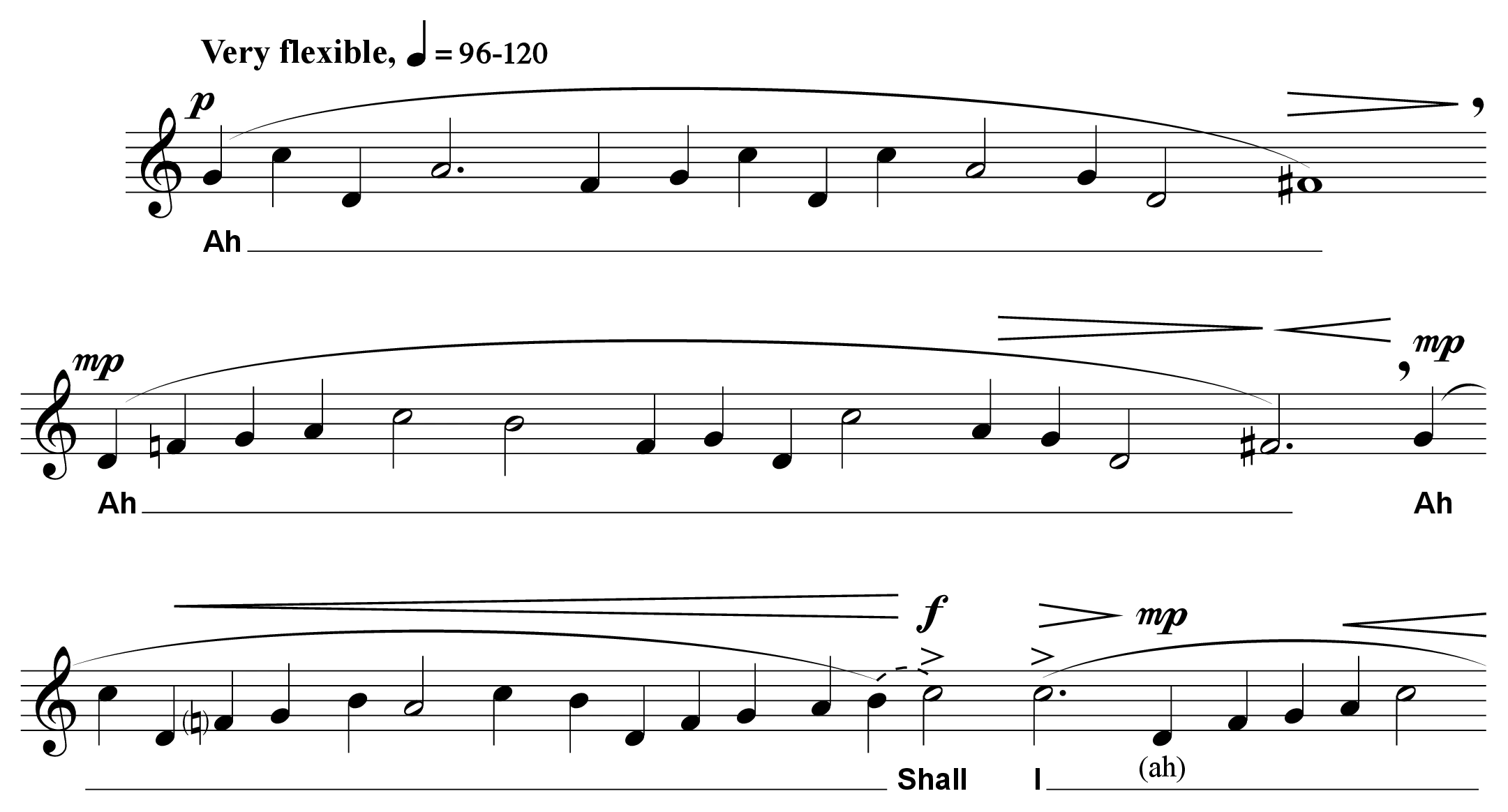 Sonnet XVIII was composed with the intention of being performed at our outdoor wedding in June 2016. The setting was a mill in a valley by a creek - a beautiful scene, and not perfectly quiet. My vision was that the music would waft on the breeze, sometimes almost getting lost in the sound of the water. As it turned out, the singer got bronchitis and we had to do some last-minute shuffling. The piece was premiered a year later at the WindDown Festival (a kind of afterparty during the Toronto Fringe Festival) at Majlis Art Garden in Toronto - also an outdoor space, but a more urban one. The soprano was Kristin Mueller-Heaslip, my long-time collaborator.