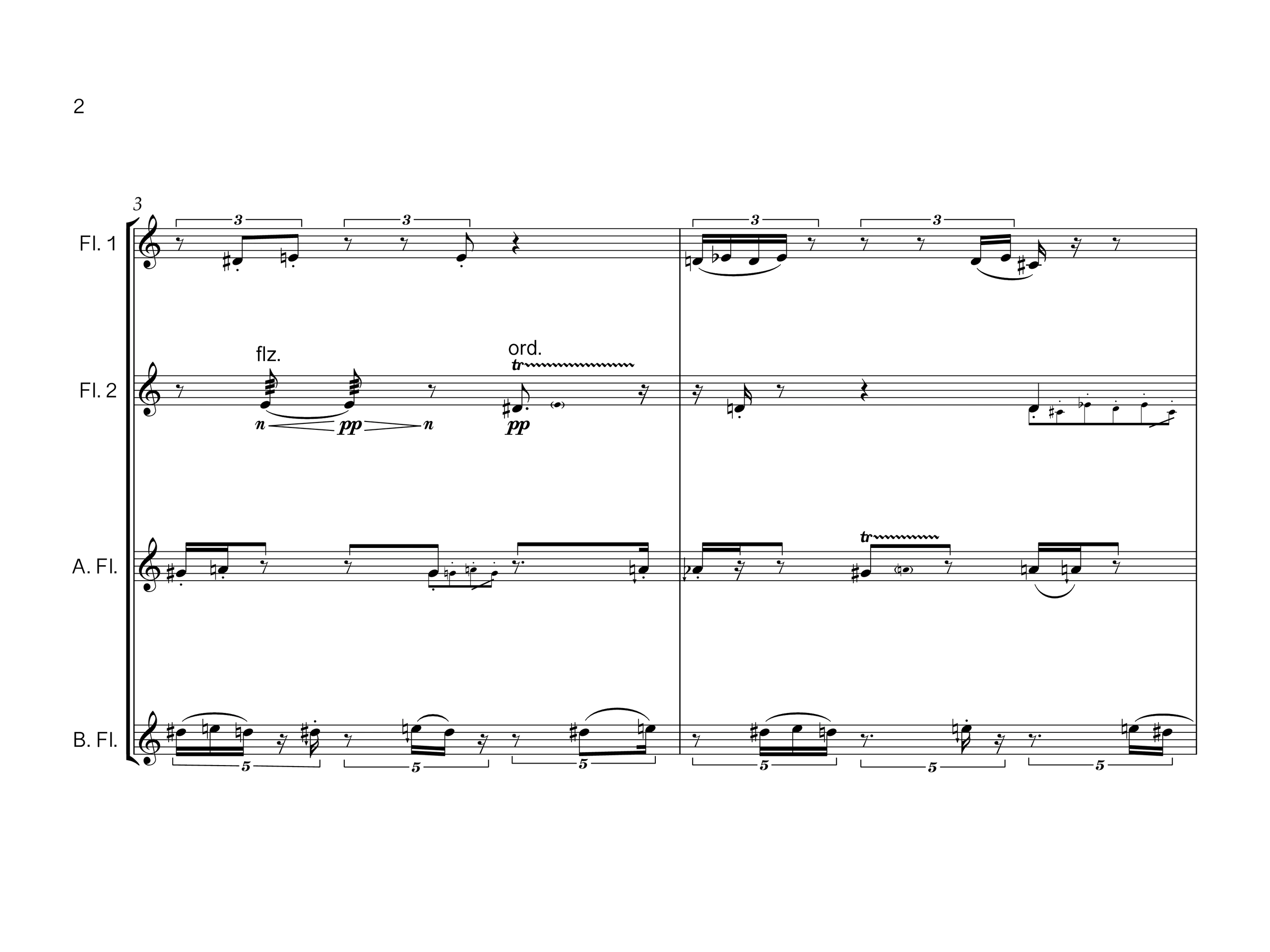 Caustics continues my fascination with drawing connections between two forms of musical spirals: suspension chains and textures that glacially move outward in contrary motion, creating the illusion of infinite expansion. At its core, Caustics is a search for moments of tranquility along these spirals. The title refers to the intricate patterns of focused light formed when rays are refracted or reflected by a curved surface, most commonly seen as the shifting figurations of light at the bottom of pools. Active textures in the lower registers of the flutes representing these figurations persist through much of the first half of the piece, interacting with the difference tones produced by the higher suspension chains.