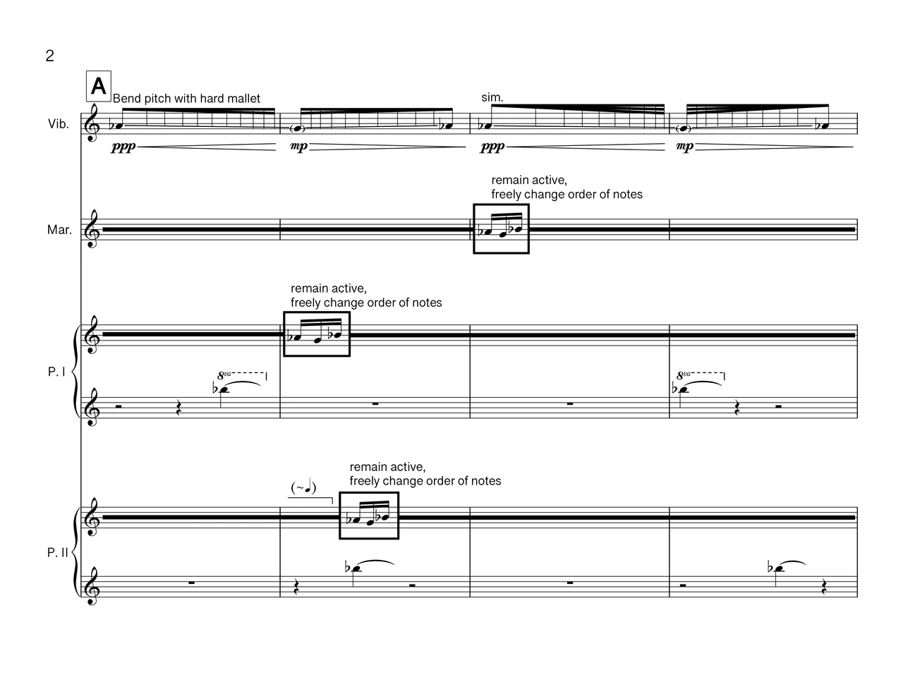 Laura Barger (piano), Julia Den Boer (piano), Russell Greenberg (vibraphone), Sae Hashimoto (marimba)