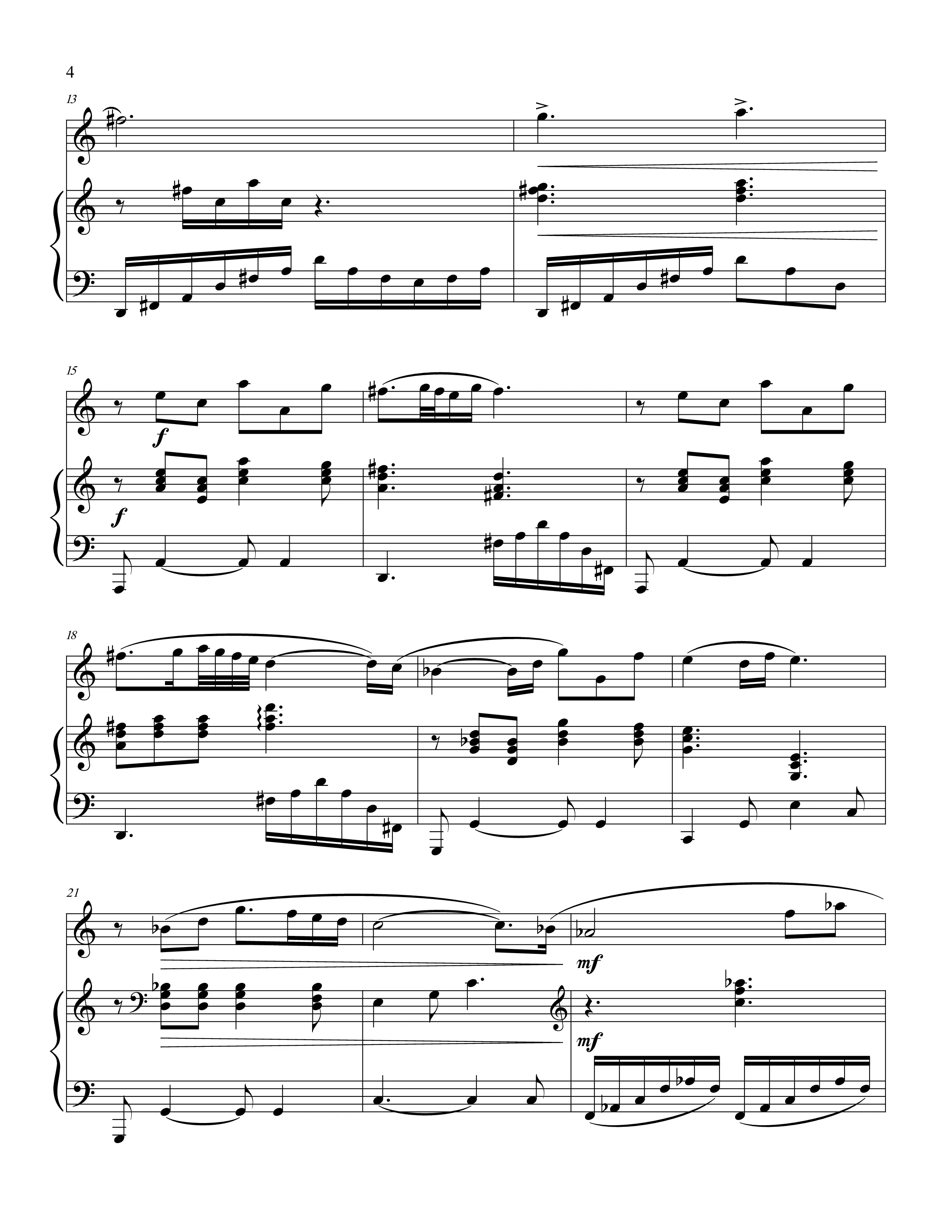 The music is not quite programmatic, though the first movement I nicknamed "Day," the second "Night," and the third "Flight," since those were the things I was thinking about while composing this piece. After all, what does a bird's day look like?