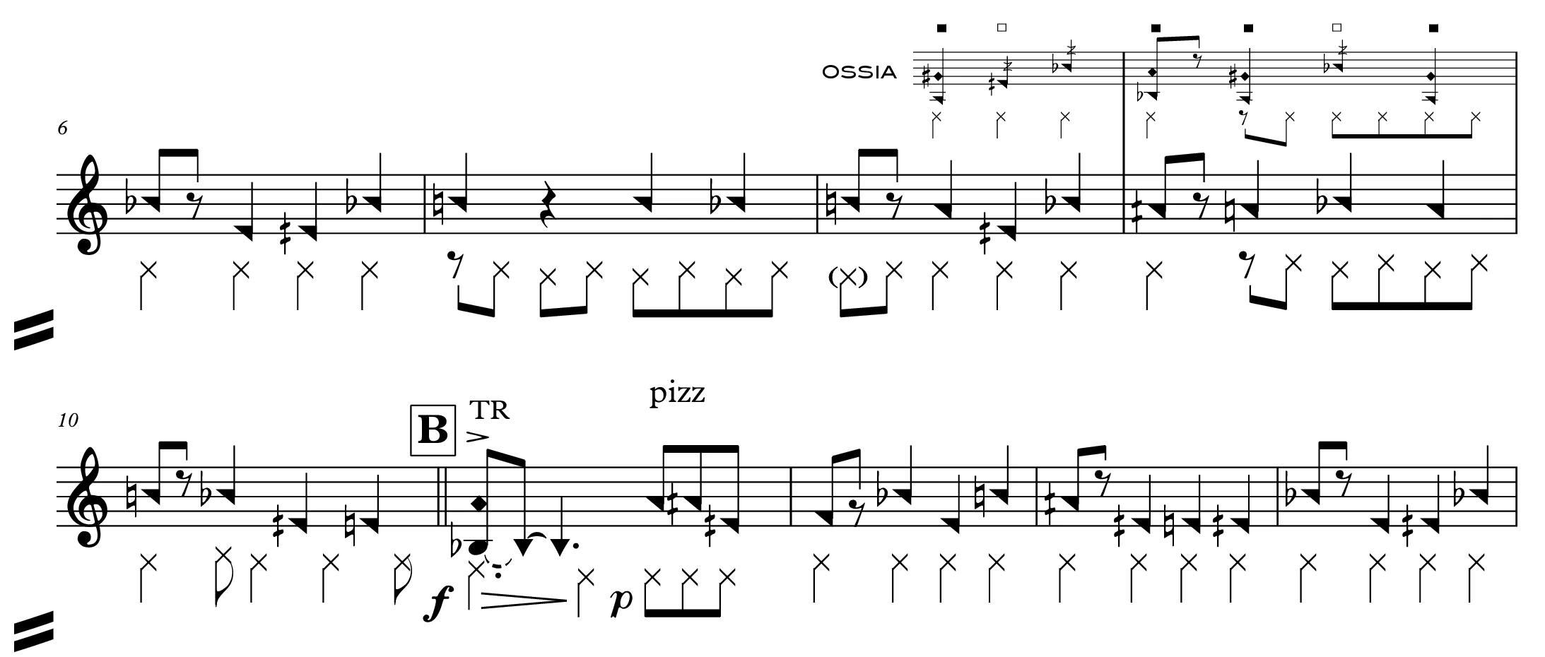 Moreover, these target notes sometimes arrive slightly earlier or later than the periodicity would suggest. Each time, the added formulas appear with a new flute timbre, closer and closer to the customary timbre, until it overtakes it in resonant, and sometimes saturated, ‘multiple sounds’. The last of the six cycles thus presents a complex entanglement of timbres and melodic formulas directed towards the same pole notes, as if several di erent flute models were playing together.