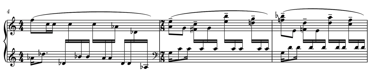Flood is an etude that explores the use of drum rudiments on the piano. Unlike many etudes, the title has little to do with the technical challenge of the piece. Rather, the word “flood” evokes the rush of overwhelming emotion we may experience in stressful situations. This short piece reminds us that a trickle turns into a torrent when the dam breaks.