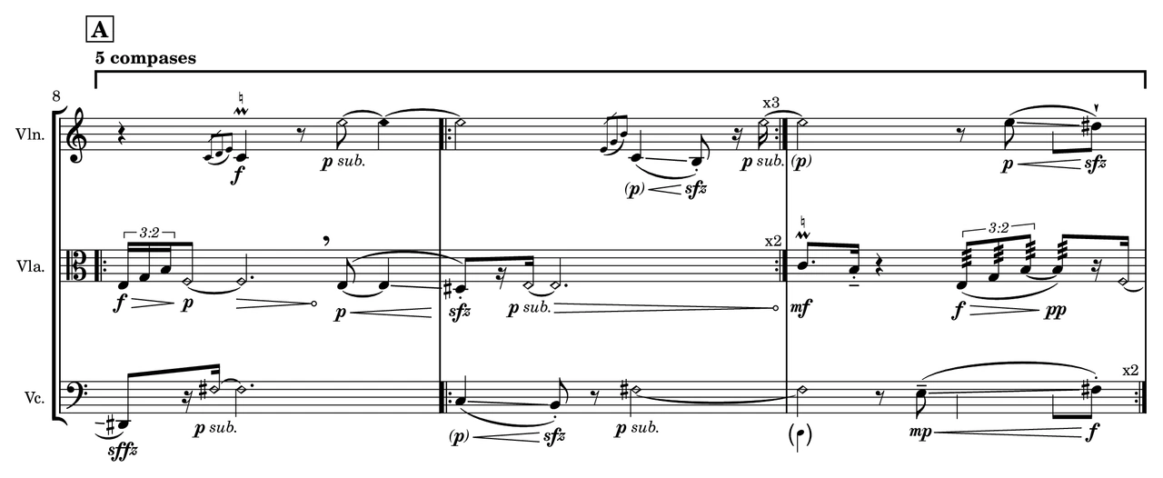 Sonata Trío, para trío de cuerdas hace referencia en su nombre al formato de la obra en la